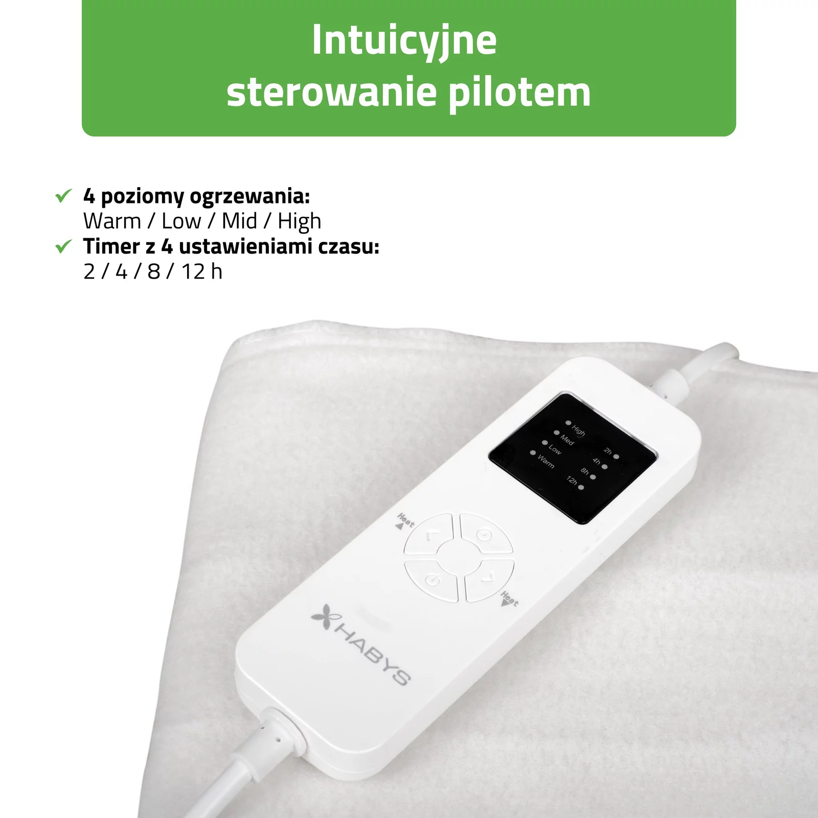 - Dostępne ustawienia timera: 2 / 4 / 8 / 12 h