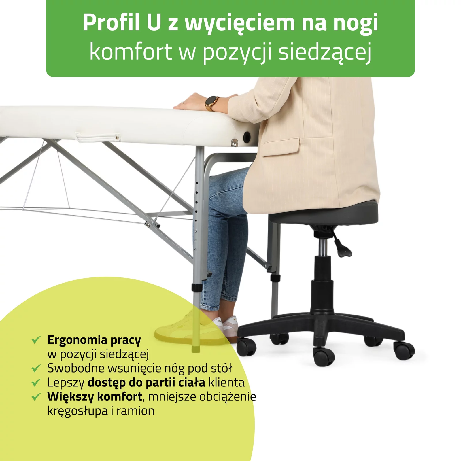 Lekki i wytrzymały stół do masażu z unikalną konstrukcją U