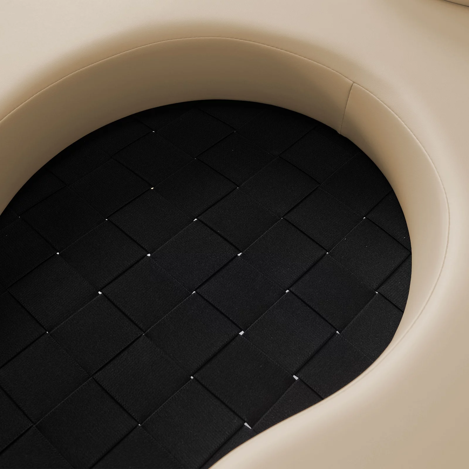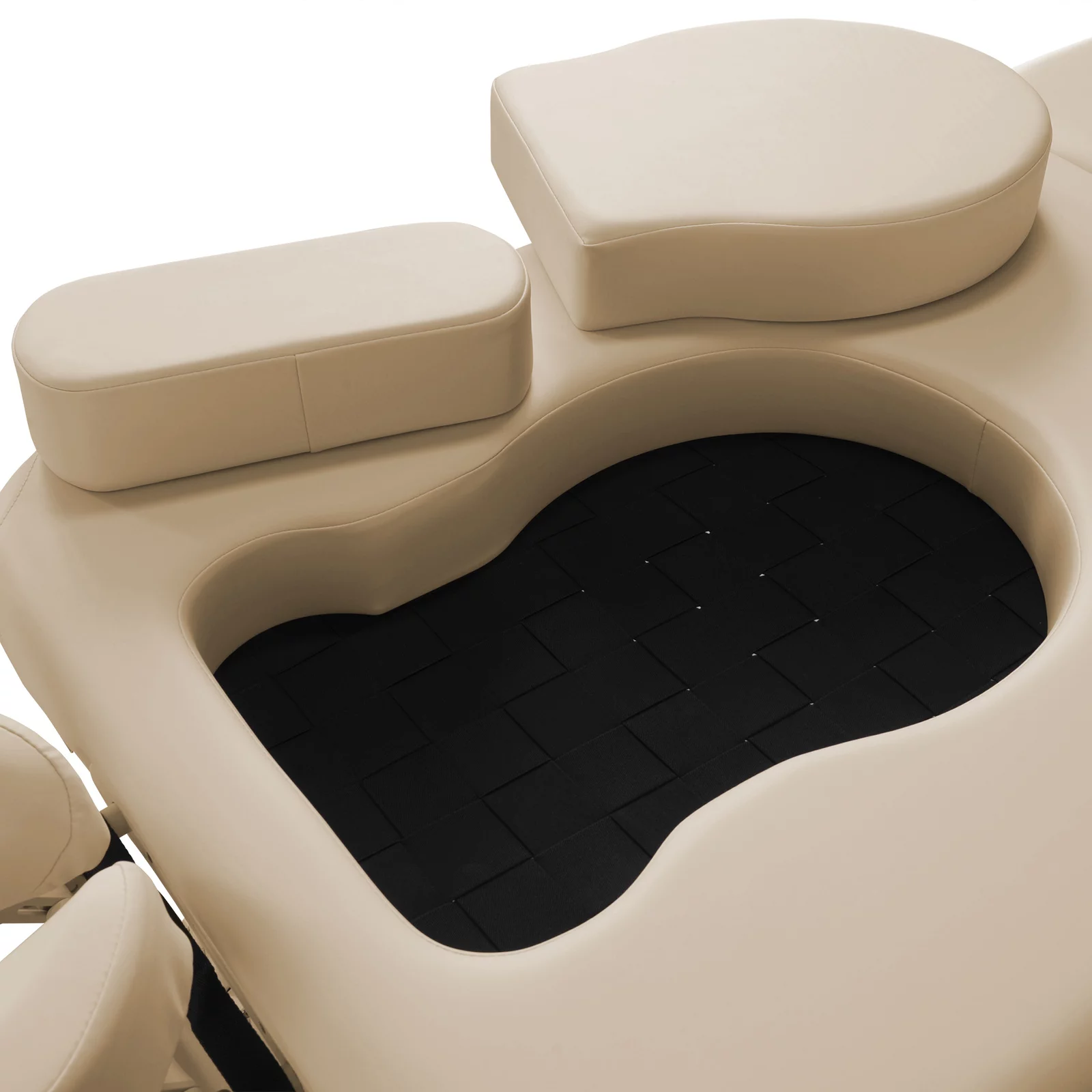 - Ergonomiczne wycięcie na brzuch i biust — dwuczęściowy otwór z systemem elastycznych taśm idealnie dopasowuje się do ciała, odciążając kręgosłup i zapewniając fizjologiczną pozycję