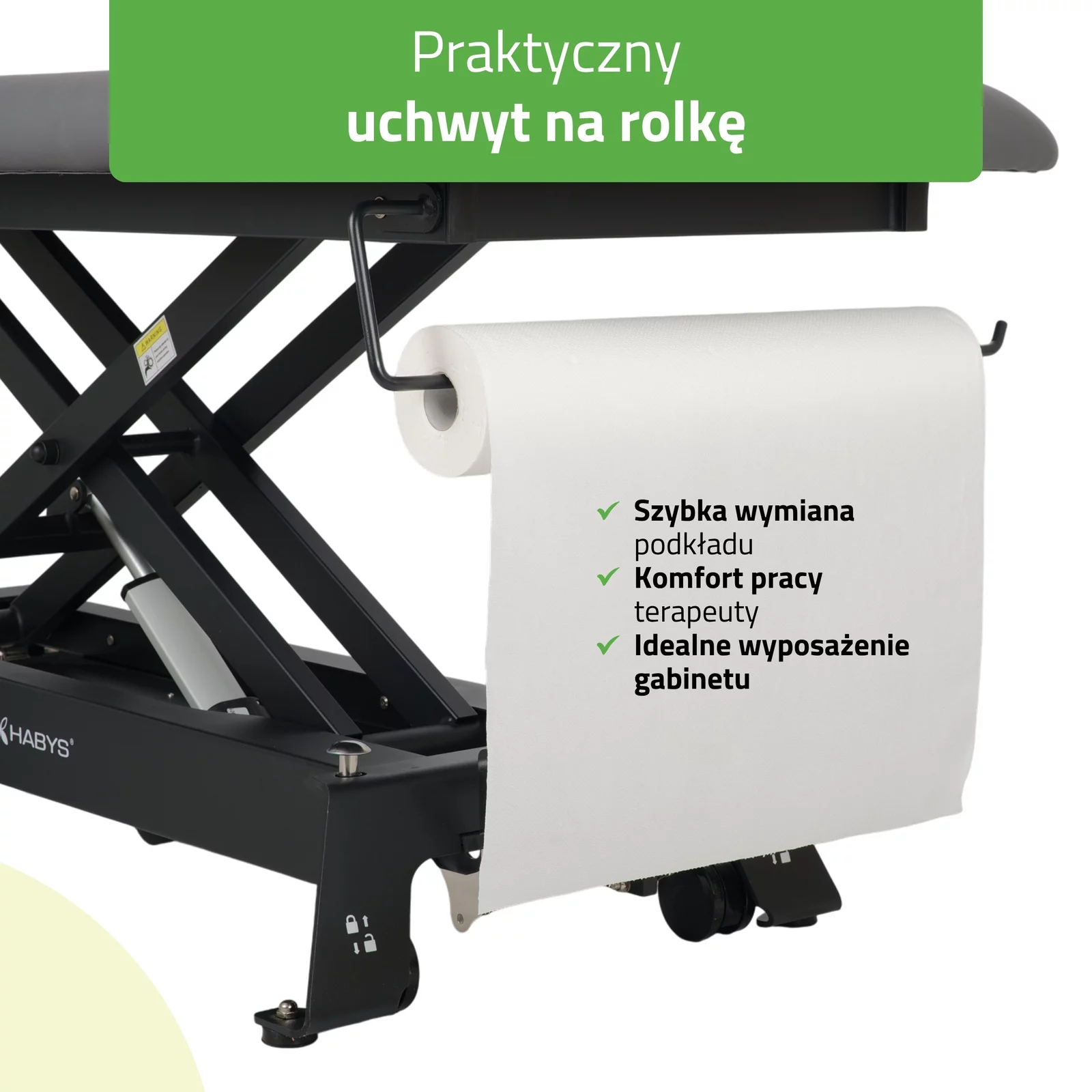 - Uchwyt na podkład higieniczny — praktyczne miejsce na rolkę o szerokości do 60 cm usprawnia przygotowanie stanowiska.