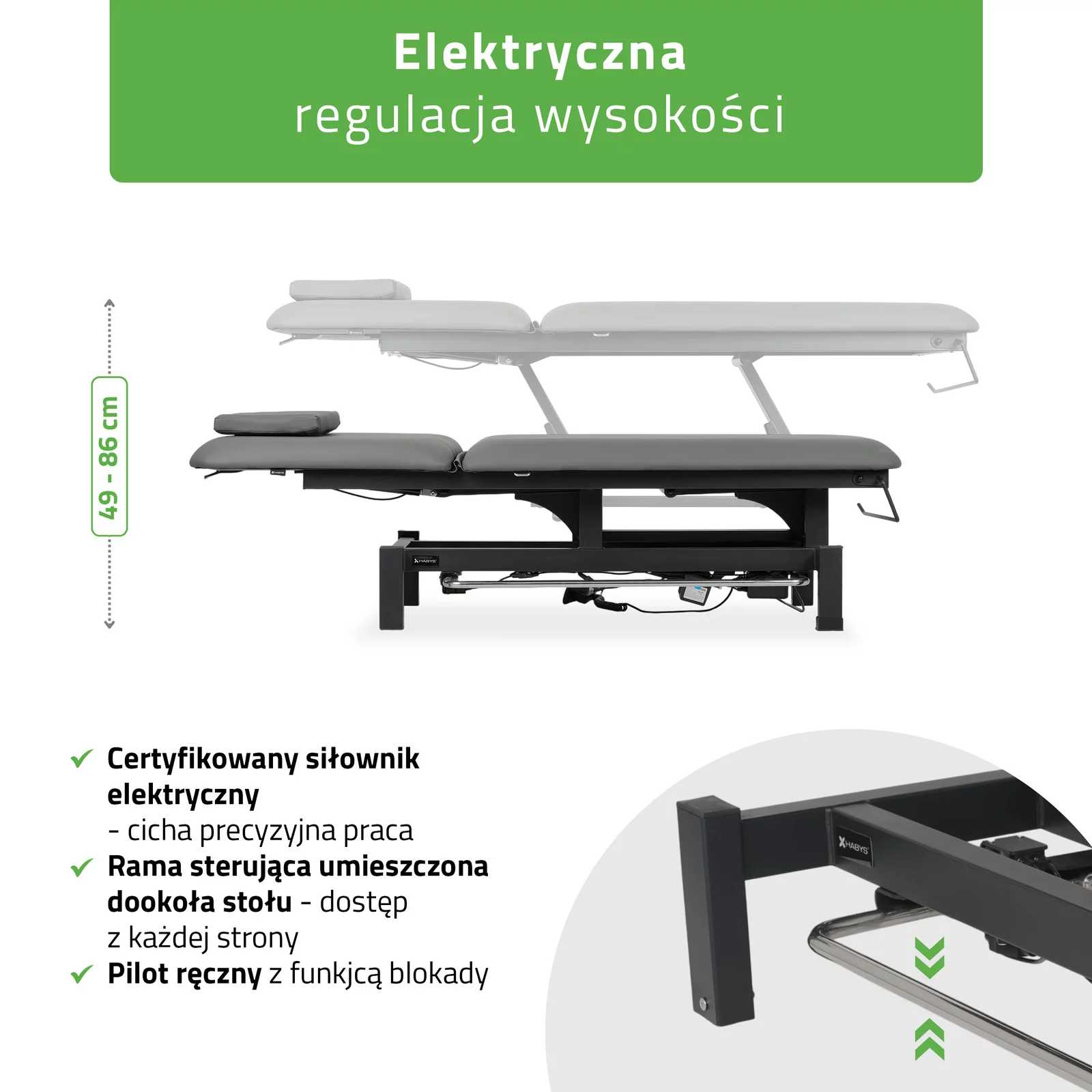 Stół do masażu Fortis 2 - elektryczny, z ramą sterującą i pilotem